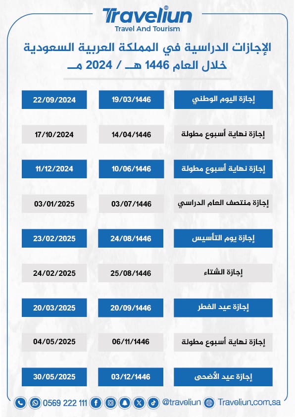 الاجازات الدراسية في المملكة العربية السعودية خلال العام 1447/2025